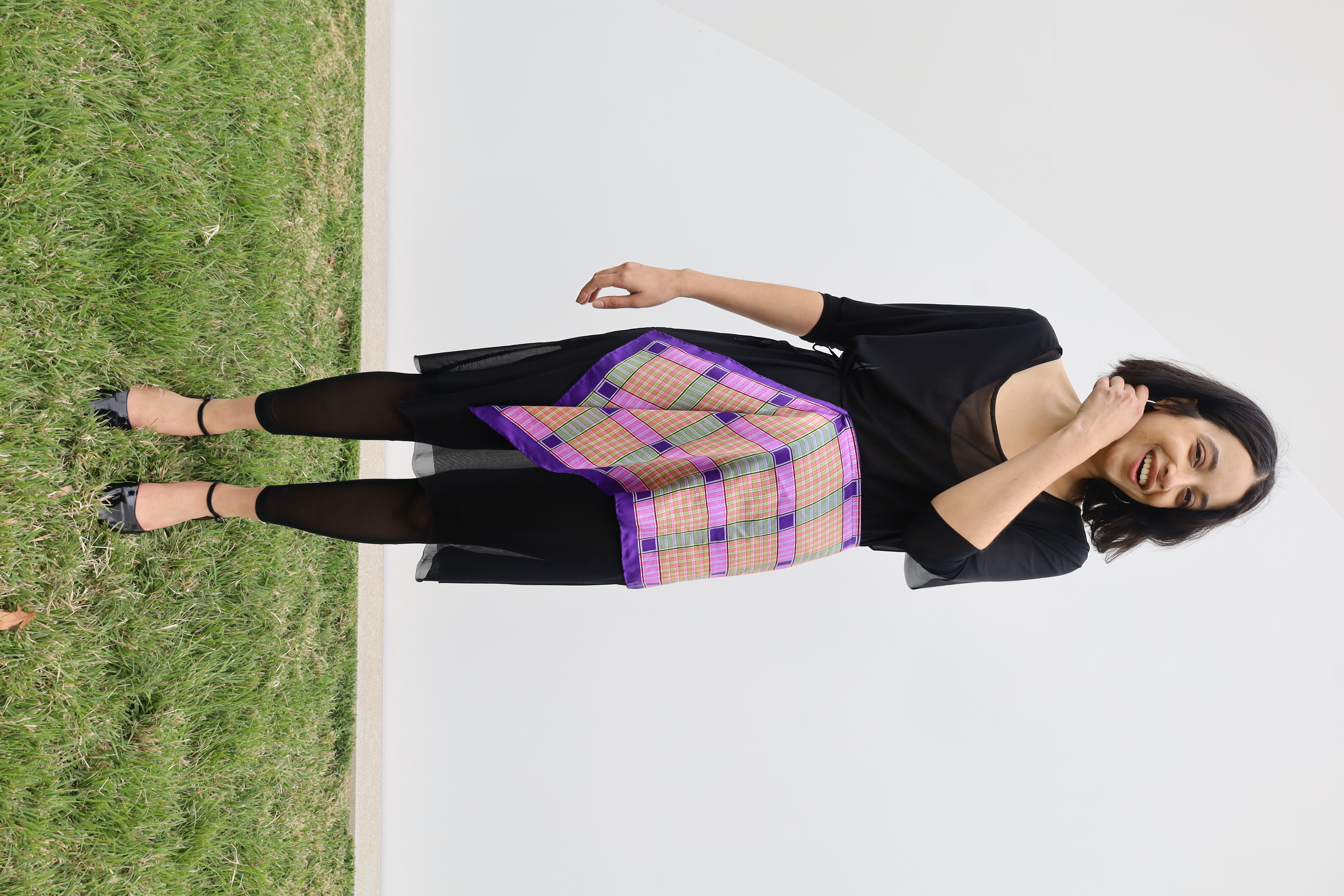 - Sewn in hand-dyed silk ribbon to tie as skirt, top, or in other ways